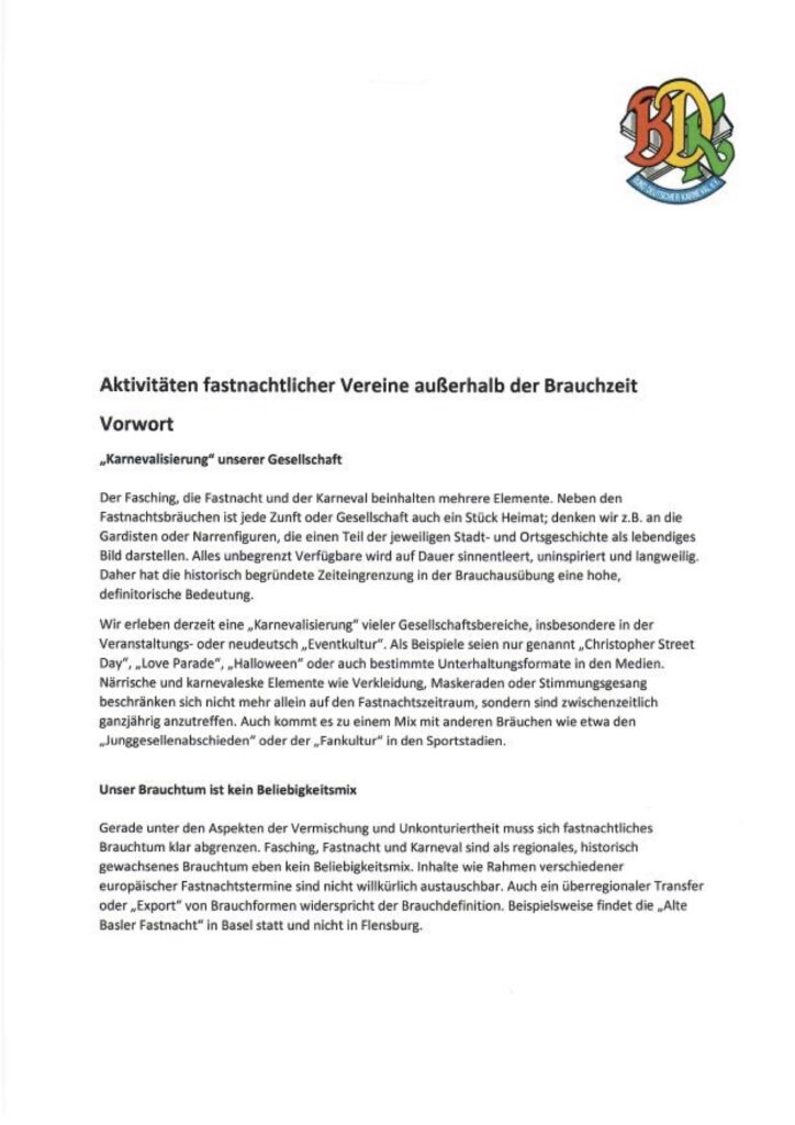 Liebe Vereins- und Verbandsvertreter des Bund Deutscher Karneval,